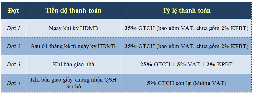 - Giá bán : 31-35 triệu/m2 thông thuỷ. Đã bao gồm VAT và nội thất